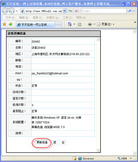 圖:訪客信息編輯窗口 _ 客服監(jiān)控窗口