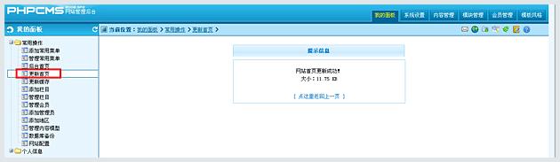 然后進(jìn)入我的面板,點(diǎn)擊常用操作下的“更新首頁(yè)”完成。 見(jiàn)圖: