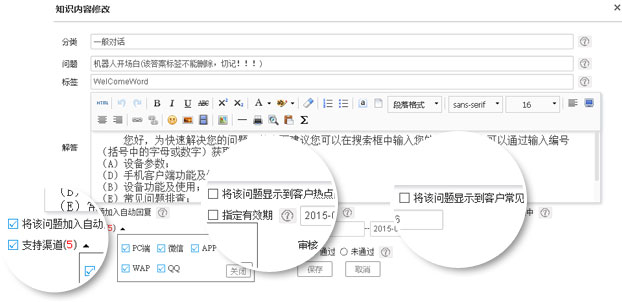 365webcall智能知識庫全媒體接入,統(tǒng)一管理、智能解答、熱點(diǎn)問題、常見問題、人員權(quán)限管理。